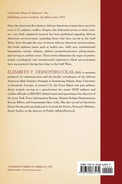 Acknowledgements Chapter One: Marching as to War: Personal Narratives of African American Women's Experiences in the Gulf Wars Chapter Two: Why We Serve: An Historical Overview of African American Women's Military Service from the Revolutionary War Through the Gulf Wars Chapter Three: "Sistahs" of Defense: Duties and Dangers of African American Women in Service in the Gulf Wars Chapter Four: My Child Left Behind: The Family and Child Care Challenges Faced by African American Gulf War Servicewomen Chapter Five: What Happens in the Desert Stays in the Desert: African American Women Confront Racism and Sexism in the Gulf Chapter Six: Where My Health Comes From: African American Servicewomen Battle Gulf War Illnesses Epilogue: Marching as to War?Final Thoughts Bibliography Index
