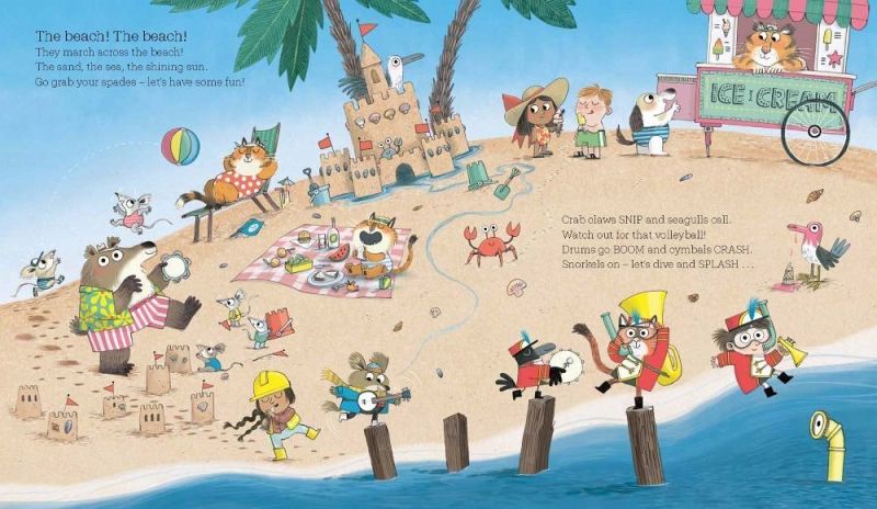 Who wants to join the marching band? EVERYONE is welcome in this energetic, anarchic adventure with artwork by award-winning Littlest Yak illustrator Kate Hindley. Kate Hindley's picture books have sold over 180,000 copies and have won awards including the Sainsbury's Children's Book Award, and Oscar's Book Prize. This band gets bigger and louder on every page! Watch out for wrecking balls on the building site, tigers roaring in the jungle and yetis on the mountain. Everyone wants to join the fun . . . even aliens in outer space! Then it's time to zoom back home, wishing everyone goodnight, one by one. Addictive rhyming text and fun repeated words. Wind-down to bedtime at the end of the story. Funny detailed scenes including a building site, a beach, a jungle and outer space. Encourages counting skills - count all 10 members of the marching band! Get ready to stomp your feet and march along in time with the band, and have lots of adventures and laughs along the way!