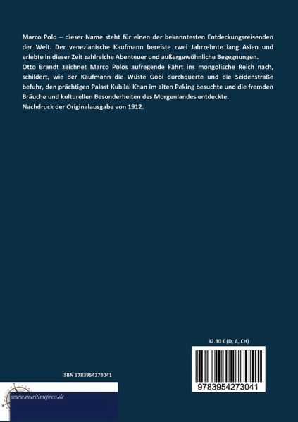 Otto Brandt zeichnet Marco Polos aufregende Fahrt ins mongolische Reich nach, schildert, wie der Kaufmann die Wüste Gobi durchquerte und die Seidenstraße befuhr, den prächtigen Palast Kubilai Khan im alten Peking besuchte und die fremden Bräuche und kulturellen Besonderheiten des Morgenlandes entdeckte.