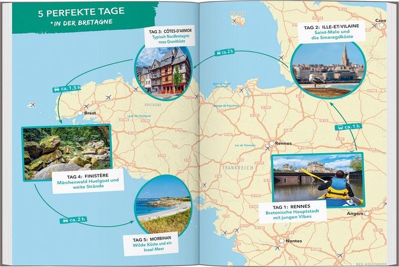 Spektakuläre Steilküste oder verwunschener Märchenwald: Finde deinen Lieblingsort in der Bretagnemit dem MARCO POLO OUTDOOR GUIDE! Highlights für Kinder, Genießer oder Adrenalinjunkies: das Best of aller Bretagne-Regionen gleich zu Beginn Nie die Orientierung verlieren dank ausführlicher Karten und GPX-Tracks zum Downloaden 5 perfekte Tage in der Bretagne: ein Kurzurlaub randvoll mit allem, was du keinesfalls verpassen darfst Spezialitäten aus der Region und Tipps für die Einkehr: Entdecke die kulinarischen Besonderheiten der Bretagne Randvoll mit Insiderwissen: Leon Ginzel ist ein absoluter Bretagne-Experte