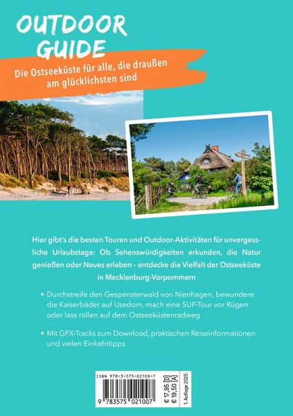 Feinste Sandstrände, urwüchsige Küstenwälder oder charmante Altstädte: Finde deinen Lieblingsort an der Ostseeküste Mecklenburg-Vorpommern mit dem MARCO POLO OUTDOOR GUIDE! Highlights für Kinder,Genießer oder Adrenalinjunkies: das Best of aller Regionen der Ostseeküste Mecklenburg-Vorpommern gleich zu Beginn Nie die Orientierung verlieren dank ausführlicher Karten und GPX-Tracks zum Downloaden 5 perfekte Tage an der Ostseeküste Mecklenburg-Vorpommern: ein Kurzurlaub randvoll mit allem, was du keinesfalls verpassen darfst Spezialitäten aus der Region und Tipps für die Einkehr: Entdecke die kulinarischen Besonderheiten der Ostseeküste Mecklenburg-Vorpommern Randvoll mit Insiderwissen: Christine Lendt ist eine absolute Kennerin der Ostseeküste Mecklenburg-Vorpommern