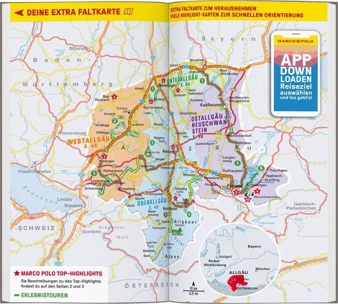 Entdecke diese Traumlandschaft ganz so, wie du es magst. Dein MARCO POLO Reiseführer Allgäu zeigt dir die besten Ausflugstipps und den schnellsten Weg zum Ziel!