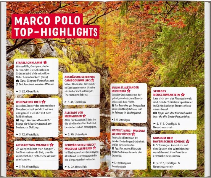 Ob Aktiv-Urlaub oder Entspannung pur, kurze Alltagsflucht oder langer Traumurlaub: Dein MARCO POLO Reiseführer ist der ideale Begleiter, wenn du das Allgäu erkundest.