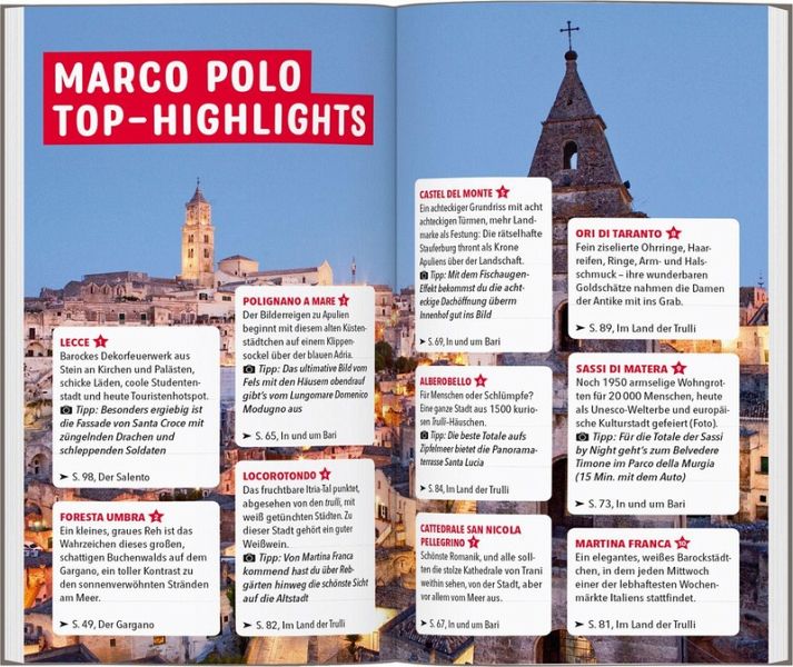 Lass dich von den Erlebnistouren in deinem MARCO POLO Reiseführer Apulien inspirieren und stell dir deinen Traumurlaub zusammen!