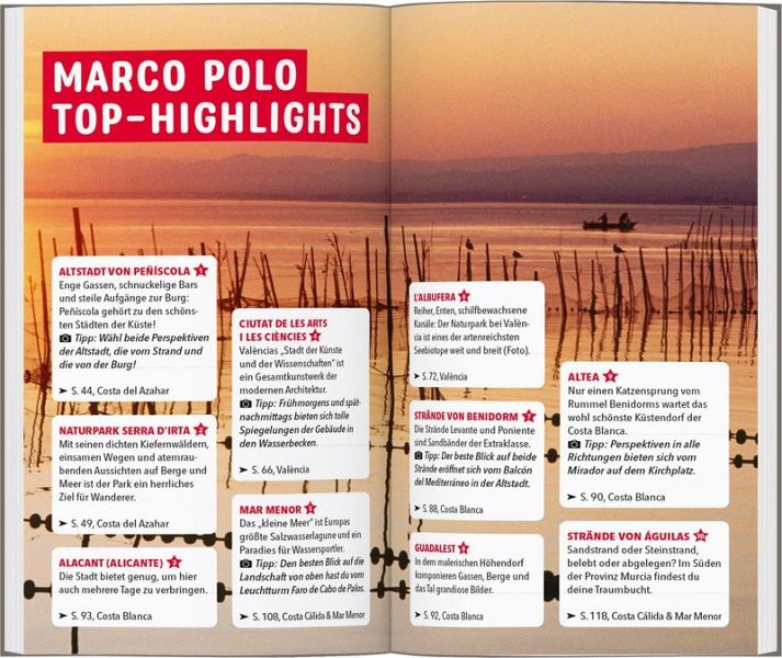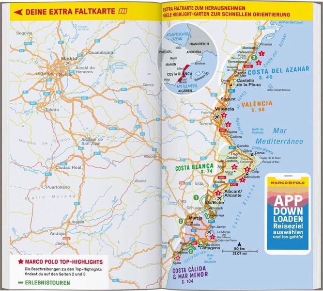 Auch die Spanier sind Feuer und Flamme für ihre Südostküste. Kein Wunder, mehr Sonne als hier gibt es in Europa nirgendwo. Dein MARCO POLO Reiseführer verrät dir, was die Einheimischen zwischen Peñíscola und Aguilas sonst noch lieben: Stelle dir mit den vielen Tipps und Empfehlungen genau das Urlaubsprogramm zusammen, das dir gefällt. So erkundest du Küste und Hinterland in deinem eigenen Rhythmus. Ob Wanderurlaub, Städtetrip oder Badetag am Strand - mit dem MARCO POLO Reiseführer Costa Blanca hast du alles im Gepäck, was du für deine Traumreise brauchst!