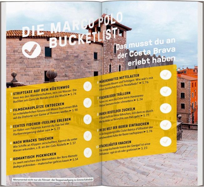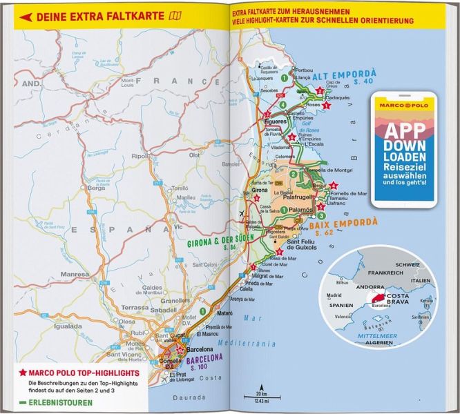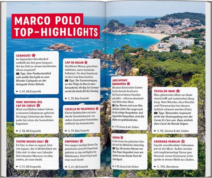 Mit dem MARCO POLO Reiseführer im Gepäck lernst du dein Reiseziel individuell und authentisch kennen. Stell dir aus den vielen Tipps ganz einfach ein Urlaubsprogramm zusammen, das dich begeistert! Oder verbringe mit den fertigen Erlebnistouren ohne lange Vorbereitung einen traumhaften Tag. Ob Wandertour durchs Hinterland oder Partynacht in Lloret de Mar: Mit deinem MARCO POLO Reiseführer holst du aus jedem Tag an der Costa Brava das meiste für dich raus!