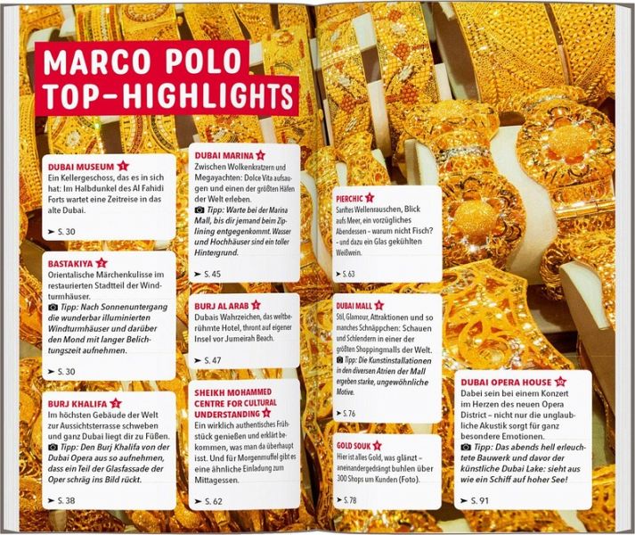 Der weltgrößte künstliche Wasserweg, noch vom All aus sichtbare künstliche Inseln - Prassen und Prahlen gehören in der Metropole der Superlative dazu. Doch in den Souks von Bur Dubai und Deira geht es damals wie heute orientalisch-lebhaft und bodenständig zu. In deinem MARCO POLO Reiseführer Dubai findest du Wissenswertes zum Reiseziel, Tipps für Übernachtungen, Shopping und Sport, Infos zur Anreise und zum ÖPNV. Die Musik-, Film- und Buchtipps sorgen für das richtige Dubai-Feeling!