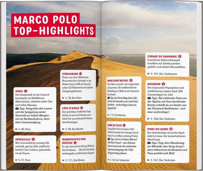 Wofür du dich auch entscheidest, dein MARCO POLO Reiseführer Frankreich gibt dir die besten Tipps für Ausflüge, Einkehr und Erholung!