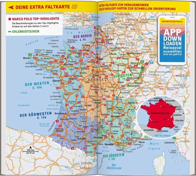 Insider-Tipps von Autoren, die vor Ort leben: Was lieben die Franzosen an ihrem Land besonders? Erkundungstouren zu den spannendsten Ausflugszielen - schnell und unkompliziert, inklusive Faltplan zum Ausklappen Marco Polo Erlebnistouren: Ausflüge für Neugierige, Genießer, Architekturfans und für Familien - mit Karte oder App!
