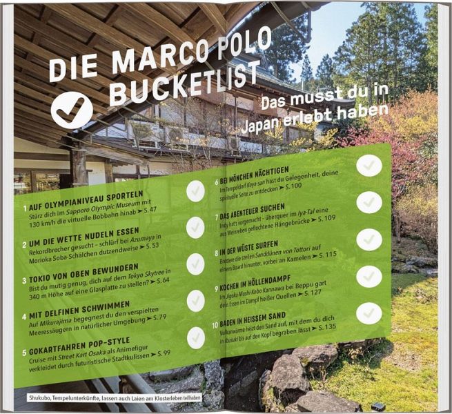 Erkunde die bunten Viertel Tokios, wo selbst Klobrillen kleine Technikwunder sind, oder meditiere nach einem vegetarischen Mahl mit den buddhistischen Mönchen im Tempeldorf Koya-san. Beobachte wilde Braunbären beim Lachsfrühstück oder Schneeaffen beim Baden in heißen Quellen und paddle im Kanu durch die Mangrovenwälder von Iriomote. Mit dem MARCO POLO Reiseführer planst du deine Japan-Reise im Handumdrehen und findest dich vor Ort schnell zurecht. So wird dein Urlaub zum unvergesslichen Erlebnis!