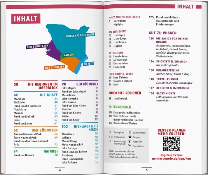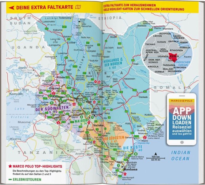 MARCO POLO Insider-Tipps für unvergessliche Erlebnisse auch abseits der bekannten Touristenpfade Kenia zu Fuß oder mit dem Rad entdecken: Mit den MARCO POLO Erlebnistouren auf Karte oder in der kostenlosen Touren-App Die besten Restaurants, Shops und Aktivitäten für jeden Geschmack und Geldbeutel Best-of-Tipps für Regentage, Urlaub mit Kindern und Low-Budget-Ausflüge Komplett überarbeitetes Kartenmaterial für beste Orientierung