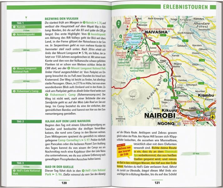 Schwimmen, tauchen, sonnenbaden? Klar, das kannst du in Kenia auch, zum Beispiel am Diani Beach mit seinem puderfeinen weißen Sand. Aber Kenia steht vor allem für Abenteuer und Wildnis-Feeling! Wie wäre es zur Abwechslung mit einer Radtour durch den Hell's Gate National Park, vorbei an grasenden Zebras und Antilopen? Wenn es dir in der Savanne zu heiß wird, kannst du auf die schneebedeckten Gipfel des Mount Kenya wandern oder die lauen Nächte in Nairobis Clubs durchtanzen. Mit deinem MARCO POLO Reiseführer Kenia findest du immer schnell zum nächsten Ziel und erlebst einzigartige Urlaubsmomente!