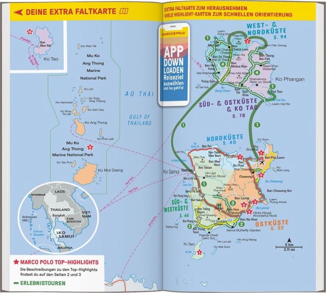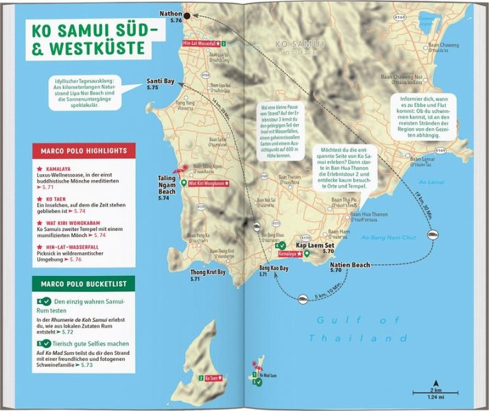 Hier kannst du bei einsamen Strandwanderungen den Aussteiger in dir entdecken oder dich in den tropischen Inseltrubel von Ban Lamai stürzen. Wofür du dich auch entscheidest: Dein MARCO POLO Reiseführer ist Ko Samui und Ko Phangan ist dabei der perfekte Begleiter!