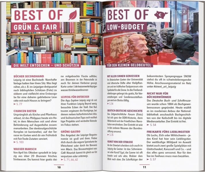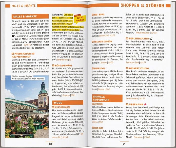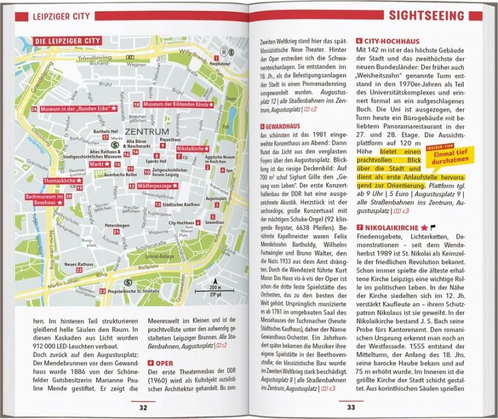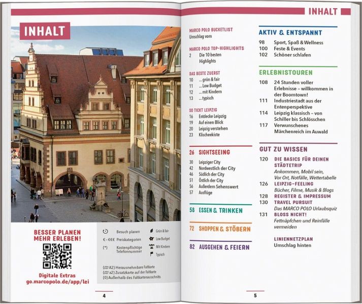 Paddle durch den Großstadtdschungel vorbei an Fabriken und Villen, skate am Nachmittag um den "Cossi" und atme abends Weltstadtflair beim Shoppen in der Mädlerpassage. Mach ein Pärchenfoto auf der romantisch geschwungenen Holzbrücke am See im Johannapark oder verbringe den ganzen Tag mit deinen Kindern im "Zoo der Zukunft", der fast komplett ohne Gitterstäbe auskommt. Ob pralles Großstadtleben oder entspanntes Bummeln: Wenn du Sachsens Trendstadt erkundest, ist der MARCO POLO Reiseführer Leipzig dein Begleiter.