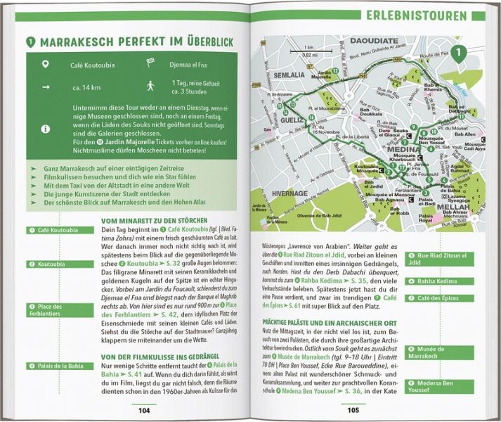 »Hast du nur noch einen Tag zu leben, dann verbring ihn in Marrakesch«, sagen die Marokkaner. Stürze dich in das pralle Leben der Millionenstadt und genieße das trubelige Fest der Sinne mit seinen tausend Farben, Dürften und Rhythmen. Im MARCO POLO Reiseführer findest du hilfreiche Infos zur Anreise, Empfehlungen zu Hotels und Übernachtungsmöglichkeiten. Vor Ort stellst du dir mit den Stadtteilkarten und Rundgängen auf Karte oder App deine eigenen Touren durch die marokkanische Hauptstadt zusammen.