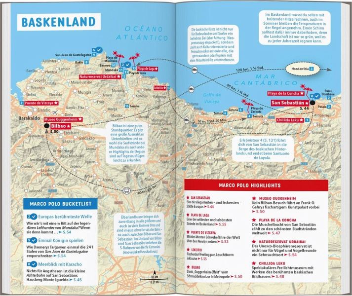 An der Küste sorgen Meeresrauschen und Möwengeschrei für Urlaubsfeeling, im Landesinneren versetzten dich imposante Bergmassive und bewaldete Hügel in die Alpen. Mit den Tipps in deinem MARCO POLO Reiseführer entdeckst du die nordspanische Küste in all ihren Facetten!