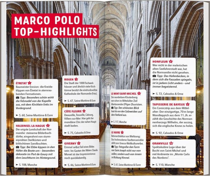 Das Beste zuerst: die MARCO POLO Top-Highlights und die MARCO POLO Bucketlist für die unvergesslichen Urlaubserlebnisse Der Urlaubsplaner für den passenden Einstieg und sprechende Karten mit Tipps und Reisehacks für jede Region MARCO POLO Best Of Tipps: konkrete Ideen für einen nachhaltigen Urlaub, typische Urlaubserlebnisse, die Reise mit Kindern und kleines Budget Shoppingtag oder Abenteuertour? Beides! Mit den MARCO POLO Insider-Tipps findest du die Spots, die auch die Normannen an ihrer Region lieben Erkundungstouren zu den spannendsten Ausflugszielen - schnell und unkompliziert, inklusive Faltplan zum Ausklappen Marco Polo Erlebnistouren: Ausflüge für Neugierige, Genießer und für Familien - mit Karte oder App!