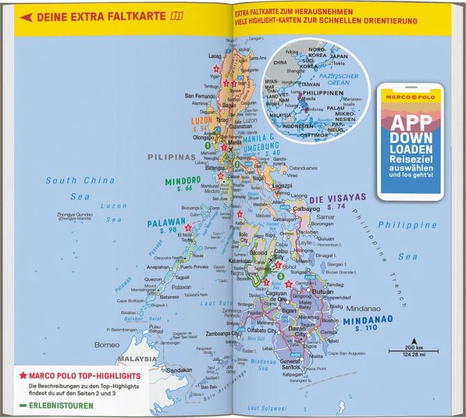 Mit Walhaien schwimmen und Feste feiern mit dem MARCO POLO Reiseführer Philippinen Ob auf Bilderbuchstränden faulenzen, sich den Einheimischen bei Festivals und Feiern anschließen oder die grandiose Aussicht vom Mount Apo genießen - die Philippinen haben viel zu bieten! Dank des MARCO POLO Reiseführers verlierst du nie den Überblick und kannst deinen Traumurlaub in aller Ruhe schon vor Reiseantritt planen. So entgehen dir weder die Chocolate Hills, noch die schönen und versteckten Ecken der Hauptstadt Manila. Lass dich verzaubern und erlebe ein Abenteuer, das du dein Leben lang nicht vergisst!