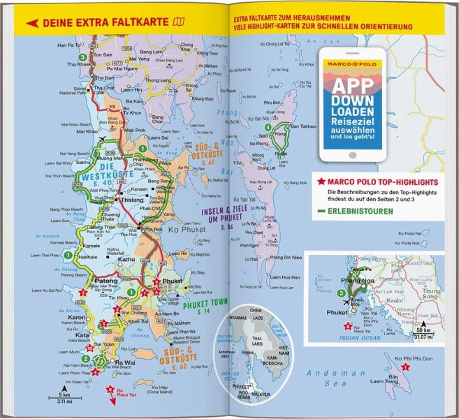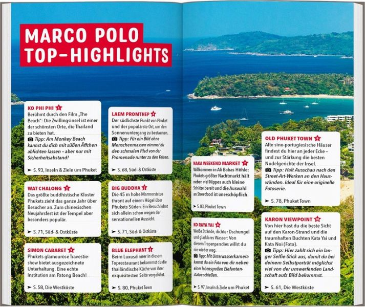Weniger suchen, mehr erleben: Mit den MARCO POLO Insider-Tipps, die nicht jeder kennt Exotische Gewürze shoppen, Tom Kha Gai schlürfen und mit bunten Fischen tauchen: Die besten Spots zum Stöbern, Schlemmen und Aktivsein Erkunde Phuket in all seinen Facetten mit den MARCO POLO Erlebnistouren und der kostenlosen Touren-App Mit Best-of-Tipps für Regenwetter, Urlaub mit Kindern, Low-Budget und typisch Regionales Schnell und entspannt zu den Must-sees mit komplett überarbeiteten Karten
