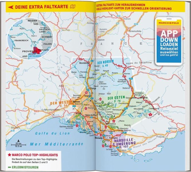 Frankreichs Vielfalt erleben mit dem MARCO POLO Reiseführer Provence Einmal leben wie Gott in Frankreich - nach einem Urlaub in der Provence kannst du diesen Punkt auf deiner Bucketlist abhaken. Trubelige Städte und stilles Hinterland, Skireviere mit Murmeltierkolonien und weiße Felsen über türkisblauem Meer, dazu ein gutes Glas Wein und ein traditioneller Ziegenkäse - was kann es Schöneres geben?