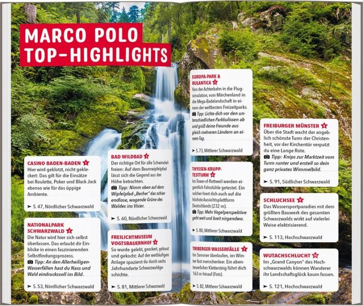Lass dich im Baden-Badener Friedrichsbad mit einer Seifenbürstenmassage in den Wellnesshimmel beamen, beweise deine Schwindelfreiheit am Klettersteig vom Karlsruher Grat oder genieße großes Gaumenkino in einem der zahlreichen Sterne-Restaurants. Worauf auch immer du Lust hast: Mit den Tipps in deinem MARCO POLO Reiseführer Schwarzwald verpasst du keins der vielen Highlights der Region!