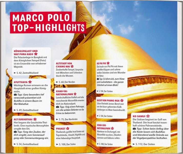 Zwischen Insel-Paradies und Mega-Metropolen: Mit dem MARCO POLO Reiseführer unterwegs in Thailand In Thailand ist dein nächstes Highlight immer nur einen Schritt entfernt: Blendend weiße Strände auf Ko Samui, Trekking abseits des Massentourismus im Dschungel des Khao-Yai-Nationalparks, ausgelassen feiern in den Bars von Phuket - du hast die Wahl! Wo auch immer deine Wege dich hinführen: Dein MARCO POLO Reiseführer Thailand hat die besten Insider-Tipps für dich: