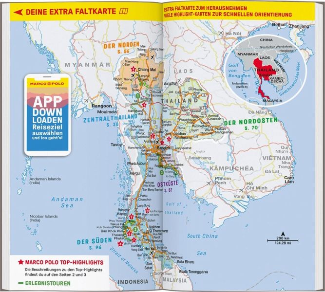 Dank des übersichtlichen Layouts und der Faltkarte zum Herausnehmen kannst du dir deinen individuellen Traumurlaub zusammenstellen: Nach einem langen Tag mit Schwimmen und Schnorcheln tauchst du im Dunst von Räucherstäbchen im Wat Chiang Man Tempel in die Welt der Buddhisten ein oder erforscht in mystischer Atmosphäre Alt-Sukhothai, den Ort, wo die Geschichte Thailands begann - dein MARCO POLO Reiseführer Thailand sorgt für eine maximal einfache Reiseplanung!