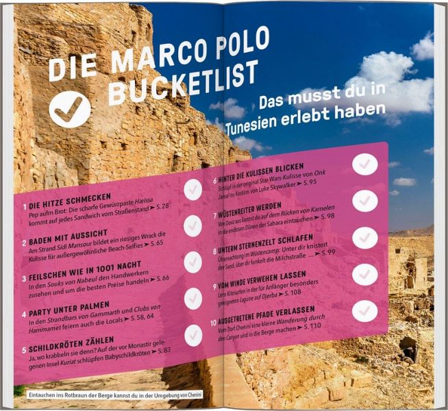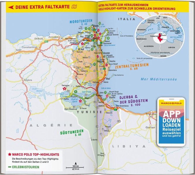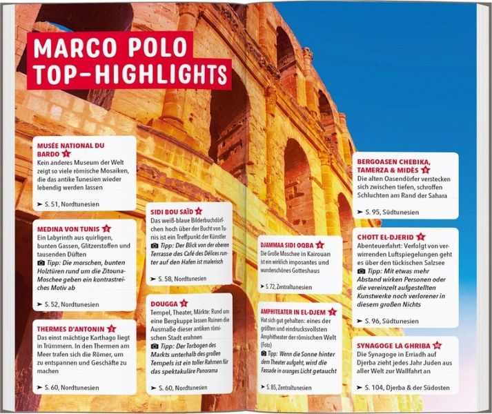 Mit den MARCO POLO Insider-Tipps von echten Tunesiern entdeckst du Sightseeing-Highlights, die nicht jeder kennt Erkundungstouren zu den spannendsten Ausflugszielen - schnell und unkompliziert, inklusive Faltplan zum Ausklappen Marco Polo Erlebnistouren: Ausflüge und Stadtrundgänge für Neugierige, Genießer, Architekturfans und für Familien - mit Karte oder App!