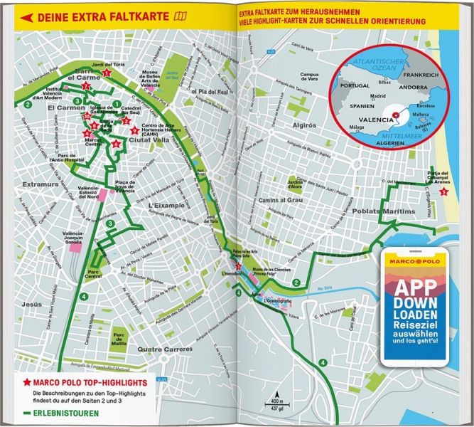 Von Windsurfen bis Seidenmalerei: Mit dem MARCO POLO Reiseführer Valencia entdecken Mit einem Becher horchata in der Hand durch die Stadt schlendern oder an einem kostenlosen Fitness-Training am Malva-rosa-Strand teilnehmen: In Valencia werden Sportlerbegeisterte und Genießer:innen gleichermaßen glücklich! Die vielen Tipps im MARCO POLO Reiseführer sorgen dafür, dass dein City-Trip in den Osten Spaniens zum absoluten Highlight wird!