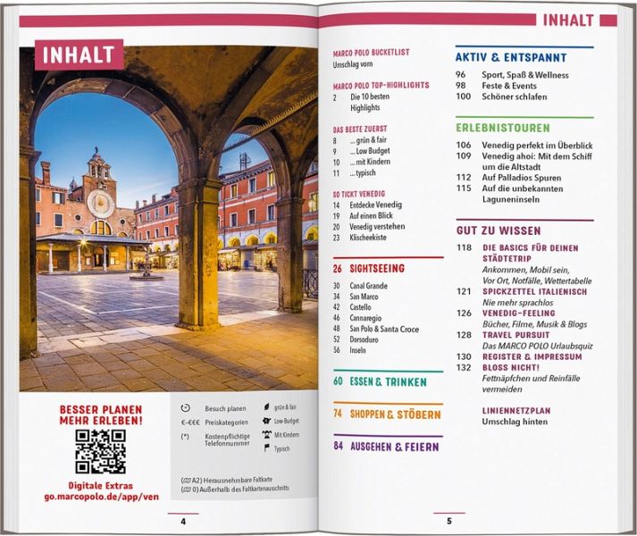Wenn du Venedig so erleben möchtest, wie nur die Italiener ihre Stadt kennen, ist der MARCO POLO Reiseführer dein idealer Begleiter. Darin findest du alles, was du für deinen Urlaub brauchst: Wissenswertes zur Stadt, Tipps für Übernachtungen sowie Infos zur Anreise und zum ÖPNV.