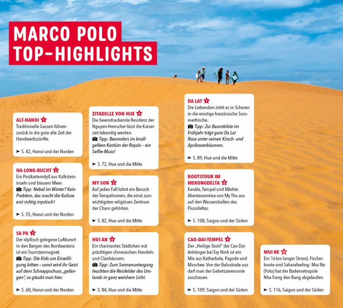 Damit du nicht den Überblick verlierst, gibt dir dein MARCO POLO Reiseführer Vietnam die besten Tipps für dein nächstes Abenteuer. So wird deine Asien-Reise genau das Erlebnis, das du dir wünschst!