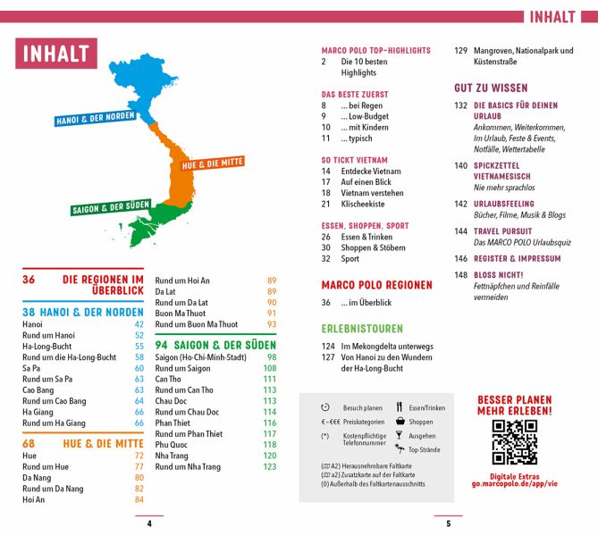 Städtetour durch Saigon oder Natur pur im Mekongdelta: Erkunde Vietnam mit der kostenlosen MARCO POLO Touren-App mit Online- und Offlinekarten Palmenstrand oder City-Dschungel? Mit den MARCO POLO Insider-Tipps erlebst du unvergessliche Momente abseits der touristischen Hotspots Frühlingsrolle, Reisstrohhut und Mountainbike: Die besten Tipps zum Schlemmen, Shoppen und Aktivsein Lassen dich nicht im Regen stehen: die Extratipps für Schlechtwetter, Urlaub mit Kindern oder Low-Budget-Ausflüge Alle Highlight-Karten und Stadtpläne wurden komplett überarbeitet