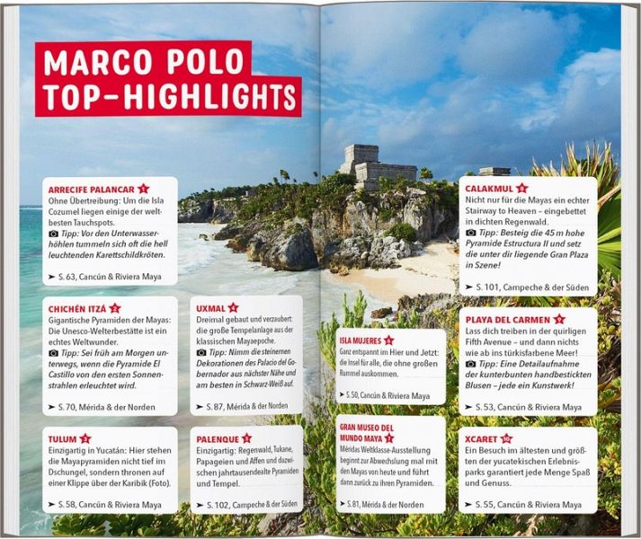 Erlebnistrip oder Strandurlaub? Tacos oder Tamales? Fischbude oder stylishes Patio-Lokal? Mit dem MARCO POLO Reiseführer Yucatán findest du die besten Spots für jeden Urlaubstag!