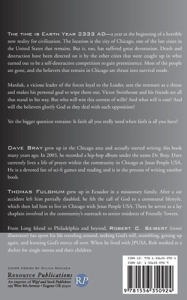 The time is Earth Year 2333 AD--a year at the beginning of a horrible new reality for civilization. The location is the city of Chicago, one of the last cities in the United States that remains. But it, too, has suffered great devastation. Death and destruction have been directed on it by the other cities that were caught up in what turned out to be a self-destructive competition to gain preeminence. Most of the people are gone, and the believers that remain in Chicago are thrust into survival mode. Marduk, a vicious leader of the forces loyal to the Leader, sees the remnant as a threat and makes his personal goal to wipe them out. Victor Steinhouse and his friends are all that stand in his way. But who will win this contest of wills? And what will it cost? And will the believers glorify God as they deal with such opposition? Yet the bigger question remains: Is faith all you really need when faith is all you have?