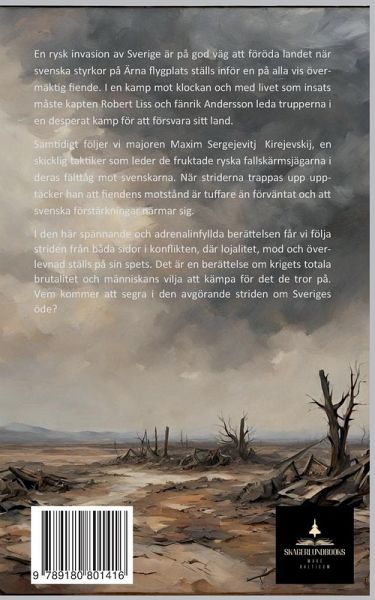 En rysk invasion av Sverige är på god väg att föröda landet när svenska styrkor på Ärna flygplats ställs inför en på alla vis övermäktig fiende. I en kamp mot klockan och med livet som insats måste kapten Robert Liss och fänrik Andersson leda trupperna i en desperat kamp för att försvara sitt land. Samtidigt följer vi majoren Maxim Sergejevitj Kirejevskij, en skicklig taktiker som leder de fruktade ryska fallskärmsjägarna i deras fälttåg mot svenskarna. När striderna trappas upp upptäcker han att fiendens motstånd är tuffare än förväntat och att svenska förstärkningar närmar sig. I den här spännande och adrenalinfyllda berättelsen får vi följa striden från båda sidor i konflikten, där lojalitet, mod och överlevnad ställs på sin spets. Det är en berättelse om krigets totala brutalitet och människans vilja att kämpa för det de tror på. Vem kommer att segra i den avgörande striden om Sveriges öde?