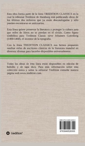 Esta obra (libro de tapa dura) forma parte de la línea TREDITION CLASSICS en la cual la editorial tredition de Hamburgo está publicando obras de los últimos dos milenios que ya están descatalogadas y sólo pueden encontrarse en anticuarios. Esta línea quiere preservar la literatura y proteger la cultura para que miles de libros no se pierdan en el olvido. Con la línea TREDITION CLASSICS nos hemos propuesto reeditar miles de escritores clásicos de la literatura mundial en diversos idiomas para hacerles disponibles universalmente.
