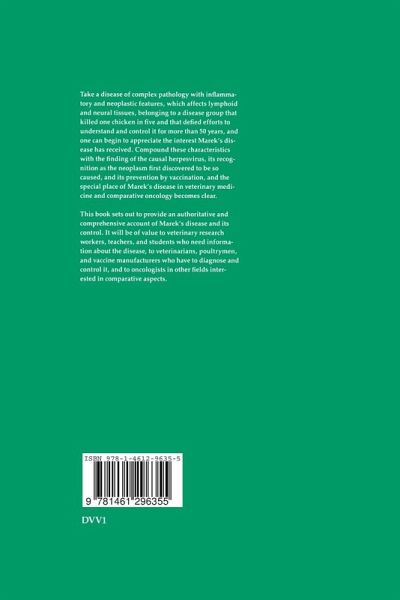 1. Historical review.- 1. Introduction.- 2. József Marek and the first description of Marek's disease.- 3. Classical studies, 1920-1939.- 4. The middle period, 1940-1959.- 5. Events since 1960.- 2. Clinical disease and its economic impact.- 1. Introduction.- 2. Occurrence of infection and disease.- 3. The disease during production.- 4. The disease at slaughter.- 5. Economic loss from disease.- 6. Conclusions.- 3. Pathology.- 1. Introduction.- 2. Gross appearances.- 3. Histopathological and ultrastructural appearances.- 4. Lymphoma-derived cell lines.- 5. Transplantable lymphomas.- 6. Factors affecting pathogenesis.- 4. Characteristics of the virus.- 1. Introduction.- 2. Virus strains.- 3. Physical and chemical properties.- 4. Isolation and cultivation.- 5. Virus replication.- 6. Viral antigens.- 7. Concluding remarks.- 5. Molecular biology of the virus.- 1. Introduction.- 2. Viral deoxyribonucleic acid.- 3. Viral proteins.- 4. Replication.- 5. Oncogenesis.- 6. Concluding remarks.- 6. Laboratory diagnosis.- 1. Introduction.- 2. Diagnosis of a field outbreak.- 3. Diagnosis of infection.- 7. Immunity.- 1. Introduction.- 2. Expression of impunity.- 3. Immune responses to Marek's disease-associated antigens.- 4. Contribution of immune responses to the expression of immunity.- 5. Immunosuppression.- 8. Principles of vaccination.- 1. Introduction.- 2. Types of vaccine.- 3. Responses to vaccination.- 4. Mechanisms of protection.- 5. Factors affecting vaccine efficacy.- 6. Investigation of vaccine failures.- 7. Comparative efficacy of vaccines.- 8. Strategies and perspectives.- 9. Production of vaccines.- 1. Introduction.- 2. Production methods.- 3. Conclusion.- 10. Quality control and standardization of vaccines.- 1. Introduction.- 2. Safety.- 3. Efficacy.- 4. Purity.-5. Standard preparations.- 6. Recommended tests.- 11. Genetic resistance.- 1. Significance and historical aspects of genetic resistance.- 2. Expression of resistance.- 3. Mechanism of genetic resistance.- 12. Spread of Marek's disease.- 1. Introduction.- 2. Spread of infection.- 3. Flock infection.- 4. Factors affecting the incidence of Marek's disease.- 13. Control of Marek's disease by the poultry industry: practical considerations.- 1. Introduction.- 2. Control by hygiene.- 3. Breeding for resistance.- 4. Control by vaccination.