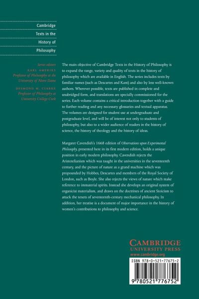 Margaret Cavendish's 1668 Observations upon Experimental Philosophy holds a unique position in early modern philosophy, drawing on the doctrines of ancient Stoicism to attack the tenets of seventeenth-century mechanical philosophy. Her treatise is a document of major importance in the history of women's contributions to philosophy and science.