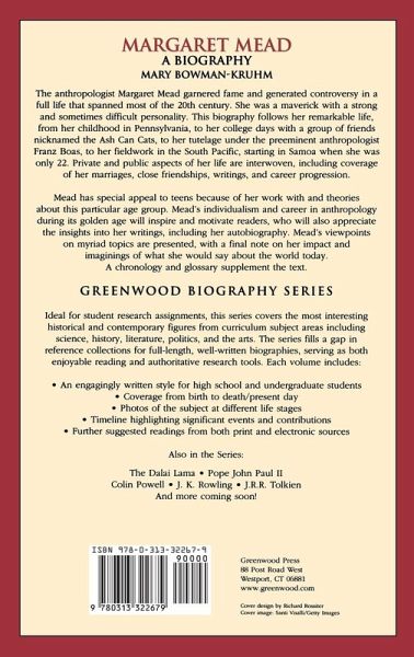 The anthropologist Margaret Mead garnered fame and generated controversy in a full life that spanned most of the 20th century. She was a maverick with a strong and sometimes difficult personality, and this biography follows her from childhood years in Pennsylvania, to college days with her pals nicknamed the Ash Can Cats, to tutelage under the preeminent anthropologist, Franz Boas, at Columbia, and her fieldwork in the South Pacific, starting in Samoa when she was 22 years of age. Private and public are interwoven, with coverage of her marriages, close friendships, writings, and career progression. Mead has special appeal to teens because of her work with and theories on this age group. Readers will be inspired by Mead's individualism and career in anthropology in its golden age. They will also appreciate the insights into her writings, including her autobiography. Mead's viewpoints on myriad topics are presented, with a final note on her impact and an imagining of what she would say about the world today. A chronology and glossary supplement the text.