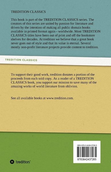 This book is part of the TREDITION CLASSICS series. The creators of this series are united by passion for literature and driven by the intention of making all public domain books available in printed format again - worldwide. At tredition we believe that a great book never goes out of style. Several mostly non-profit literature projects provide content to tredition. To support their good work, tredition donates a portion of the proceeds from each sold copy. As a reader of a TREDITION CLASSICS book, you support our mission to save many of the amazing works of world literature from oblivion.