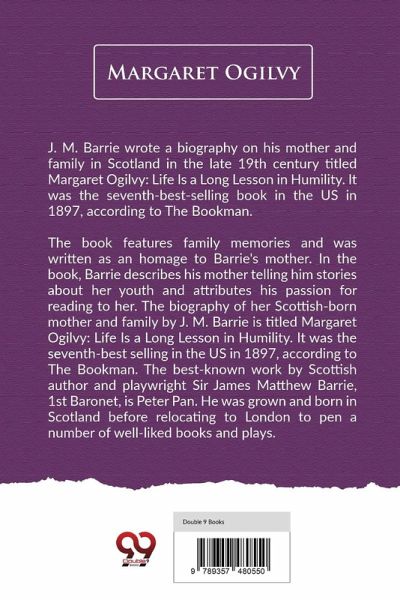 J. M. Barrie wrote a biography on his mother and family in Scotland in the late 19th century titled Margaret Ogilvy: Life Is a Long Lesson in Humility. It was the seventh-best-selling book in the US in 1897, according to The Bookman. The book features family memories and was written as an homage to Barrie's mother. In the book, Barrie describes his mother telling him stories about her youth and attributes his passion for reading to her. The biography of her Scottish-born mother and family by J. M. Barrie is titled Margaret Ogilvy: Life Is a Long Lesson in Humility. It was the seventh-best selling in the US in 1897, according to The Bookman. The best-known work by Scottish author and playwright Sir James Matthew Barrie, 1st Baronet, is Peter Pan. He was grown and born in Scotland before relocating to London to pen a number of well-liked books and plays.