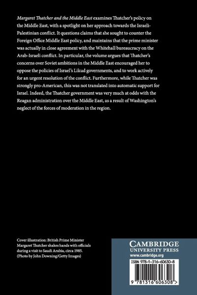 Margaret Thatcher and the Middle East examines Thatcher's policy on the Middle East, with a spotlight on her approach towards the Israeli-Palestinian conflict. It questions claims that she sought to counter the Foreign Office Middle East policy, and maintains that the prime minister was actually in close agreement with the Whitehall bureaucracy on the Arab-Israeli conflict. In particular, the volume argues that Thatcher's concerns over Soviet ambitions in the Middle East encouraged her to oppose the policies of Israel's Likud governments, and to work actively for an urgent resolution of the conflict. Furthermore, while Thatcher was strongly pro-American, this was not translated into automatic support for Israel. Indeed, the Thatcher government was very much at odds with the Reagan administration over the Middle East, as a result of Washington's neglect of the forces of moderation in the region.
