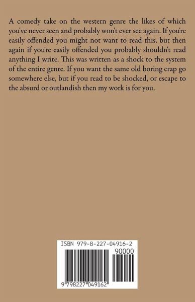 A comedy take on the western genre the likes of which you've never seen and probably won't ever see again. If you're easily offended you might not want to read this, but then again if you're easily offended you probably shouldn't read anything I write. This was written as a shock to the system of the entire genre. If you want the same old boring crap go somewhere else, but if you read to be shocked, or escape to the absurd or outlandish then my work is for you.