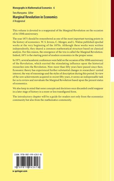 This volume is devoted to a reappraisal of the Marginal Revolution on the occasion of its 150th anniversary.