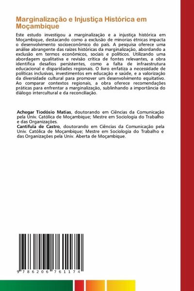 Este estudo investigou a marginalização e a injustiça histórica em Moçambique, destacando como a exclusão de minorias étnicas impacta o desenvolvimento socioeconômico do país. A pesquisa oferece uma análise abrangente das raízes históricas da marginalização, abordando a exclusão em termos econômicos, sociais e políticos. Utilizando uma abordagem qualitativa e revisão crítica de fontes relevantes, a obra identifica desafios persistentes, como a falta de infraestrutura educacional e disparidades regionais. O livro enfatiza a necessidade de políticas inclusivas, investimentos em educação e saúde, e a valorização da diversidade cultural para promover um desenvolvimento equitativo. Ao comparar contextos regionais, a obra oferece recomendações práticas para enfrentar a marginalização, sublinhando a importância do diálogo intercultural e da reconciliação.