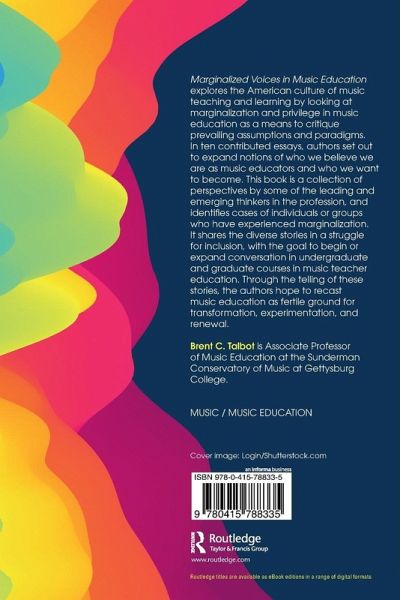 Marginalized Voices in Music Education explores the American culture of music teachers by looking at marginalization and privilege in music education as a means to critique prevailing assumptions and paradigms. In fifteen contributed essays, authors set out to expand notions of who we believe we are as music educators -- and who we want to become. This book is a collection of perspectives by some of the leading and emerging thinkers in the profession, and identifies cases of individuals or groups who had experienced marginalization. It shares the diverse stories in a struggle for inclusion, with the goal to begin or expand conversation in undergraduate and graduate courses in music teacher education. Through the telling of these stores, authors hope to recast music education as fertile ground for transformation, experimentation and renewal.