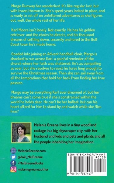 Margo Dunway has wanderlust. It's like regular lust, but with travel thrown in. She's spent years locked in place, and is ready to set off on unfettered adventures as she figures out, well, the whole rest of her life. Karl Moore isn't lonely. Not exactly. He has his golden retriever, and the choirs he directs, and his thousand dreams of settling down, securely anchored to the Gulf Coast town he's made home. Goaded into joining an Advent handbell choir, Margo is shocked to run across Karl, a painful reminder of the church where her faith was shattered. He's as compelling as ever, but she resolves to resist his lures long enough to survive the Christmas season. Then she can sail away from all the temptations that would hold her back from finding her true passion. Margo may be everything Karl ever dreamed of, but her dreams can't come true if she's constrained within the world he holds dear. He can't be her ballast, but can his heart afford for him to stand by and watch while she flies free?