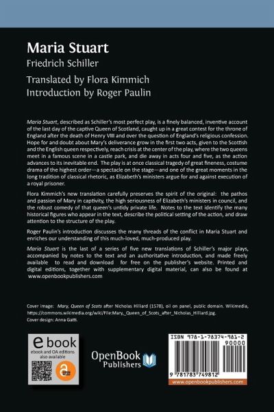 Maria Stuart, described as Schiller's most perfect play, is a finely balanced, inventive account of the last day of the captive Queen of Scotland, caught up in a great contest for the throne of England after the death of Henry VIII and over the question of England's religious confession. Hope for and doubt about Mary's deliverance grow in the first two acts, given to the Scottish and the English queen respectively, reach crisis at the center of the play, where the two queens meet in a famous scene in a castle park, and die away in acts four and five, as the action advances to its inevitable end. The play is at once classical tragedy of great fineness, costume drama of the highest order-a spectacle on the stage-and one of the great moments in the long tradition of classical rhetoric, as Elizabeth's ministers argue for and against execution of a royal prisoner. Flora Kimmich's new translation carefully preserves the spirit of the original: the pathos and passion of Mary in captivity, the high seriousness of Elizabeth's ministers in council, and the robust comedy of that queen's untidy private life. Notes to the text identify the many historical figures who appear in the text, describe the political setting of the action, and draw attention to the structure of the play. Roger Paulin's introduction discusses the many threads of the conflict in Maria Stuart and enriches our understanding of this much-loved, much-produced play. Maria Stuart is the last of a series of five new translations of Schiller's major plays, accompanied by notes to the text and an authoritative introduction.