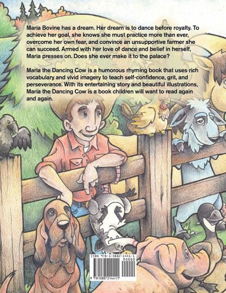 Maria Bovine has a dream. Her dream is to dance before royalty. To achieve her goal, she knows she must practice more than ever, overcome her own fear, and convince an unsupportive farmer she can succeed. Armed with her love of dance and belief in herself, Maria presses on. Does she ever make it to the palace? Maria the Dancing Cow is a humorous rhyming book that uses rich vocabulary and vivid imagery to teach self-confidence, grit, and perseverance. With its entertaining story and beautiful illustrations, Maria the Dancing Cow is a book children will want to read again and again.