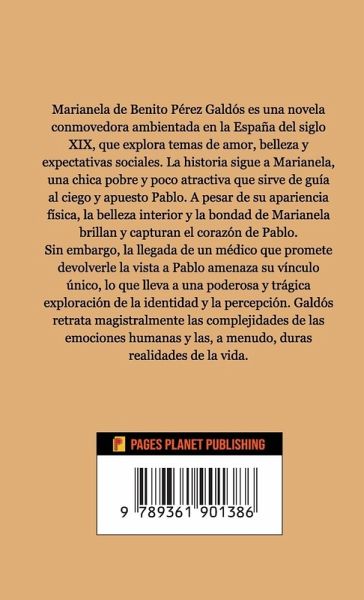 Marianela de Benito Pérez Galdós es una novela conmovedora ambientada en la España del siglo XIX, que explora temas de amor, belleza y expectativas sociales. La historia sigue a Marianela, una chica pobre y poco atractiva que sirve de guía al ciego y apuesto Pablo. A pesar de su apariencia física, la belleza interior y la bondad de Marianela brillan y capturan el corazón de Pablo. Sin embargo, la llegada de un médico que promete devolverle la vista a Pablo amenaza su vínculo único, lo que lleva a una poderosa y trágica exploración de la identidad y la percepción. Galdós retrata magistralmente las complejidades de las emociones humanas y las, a menudo, duras realidades de la vida.